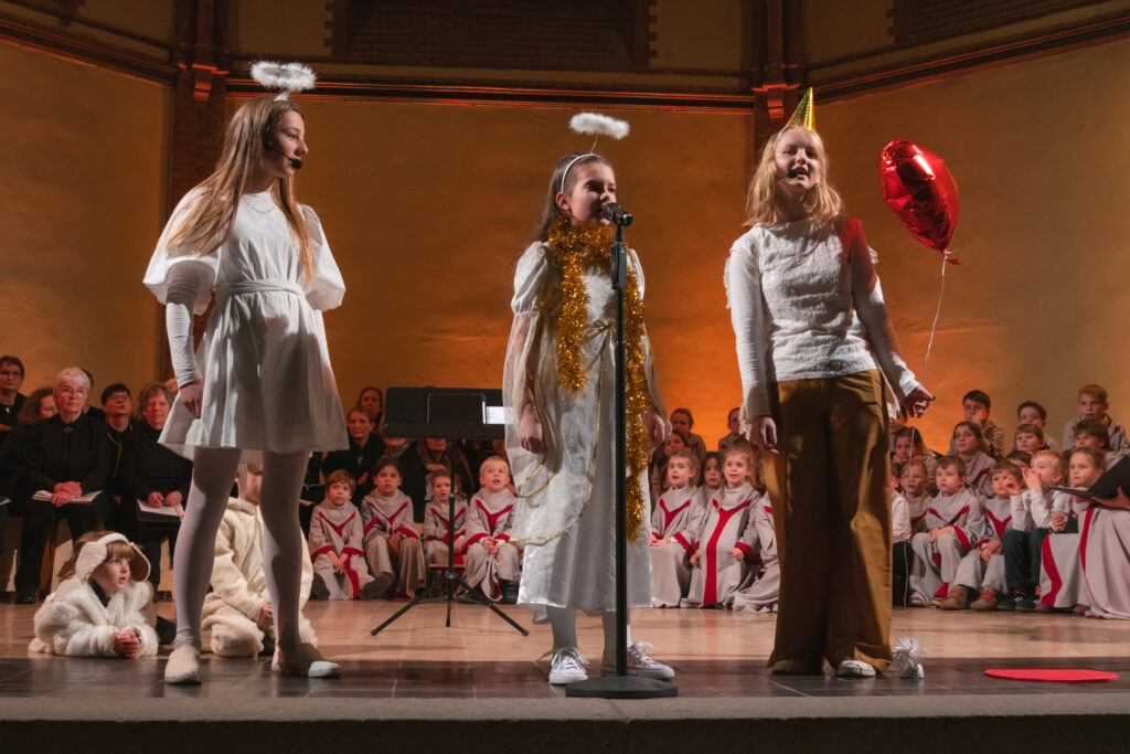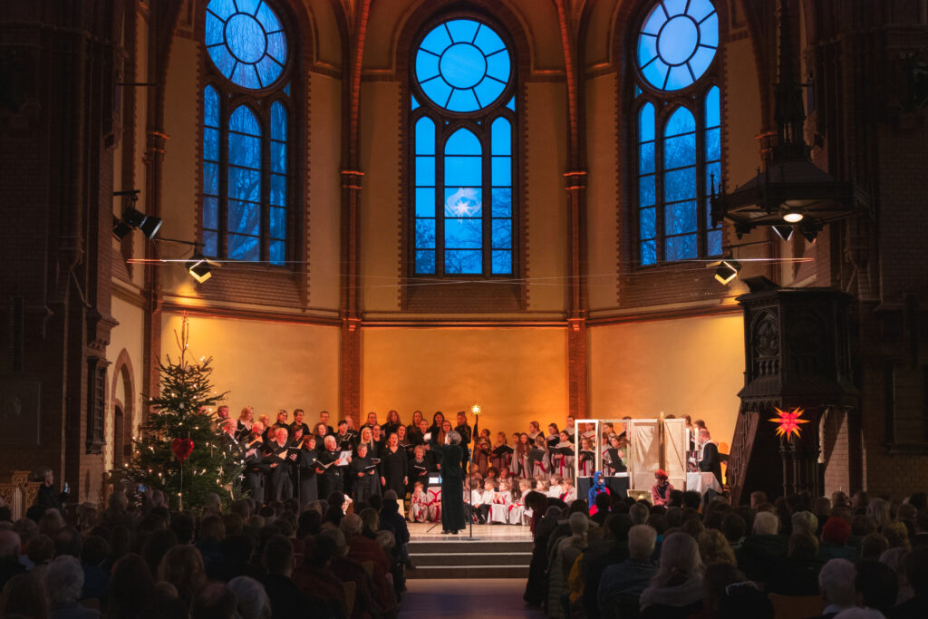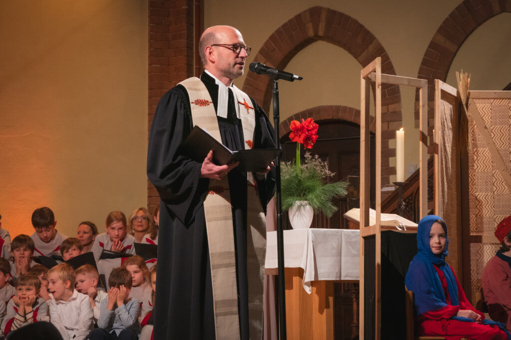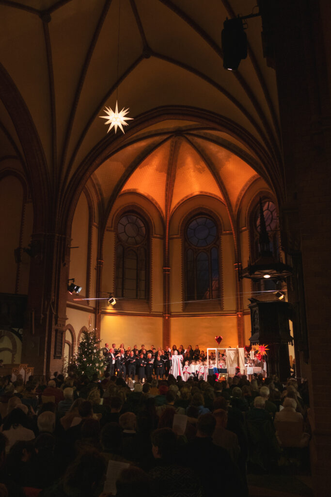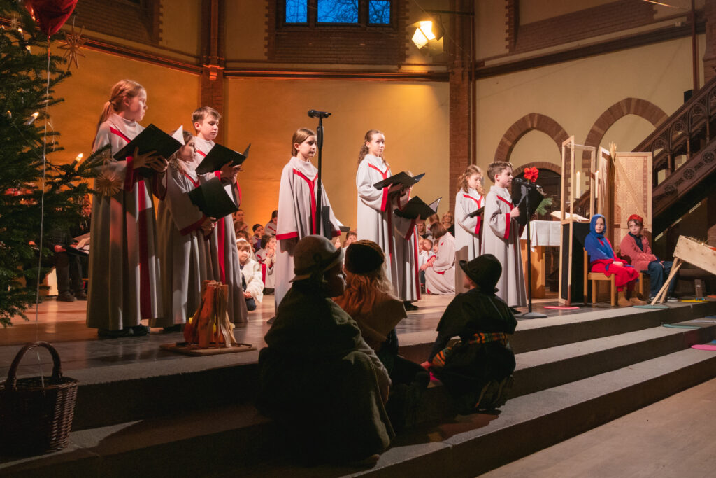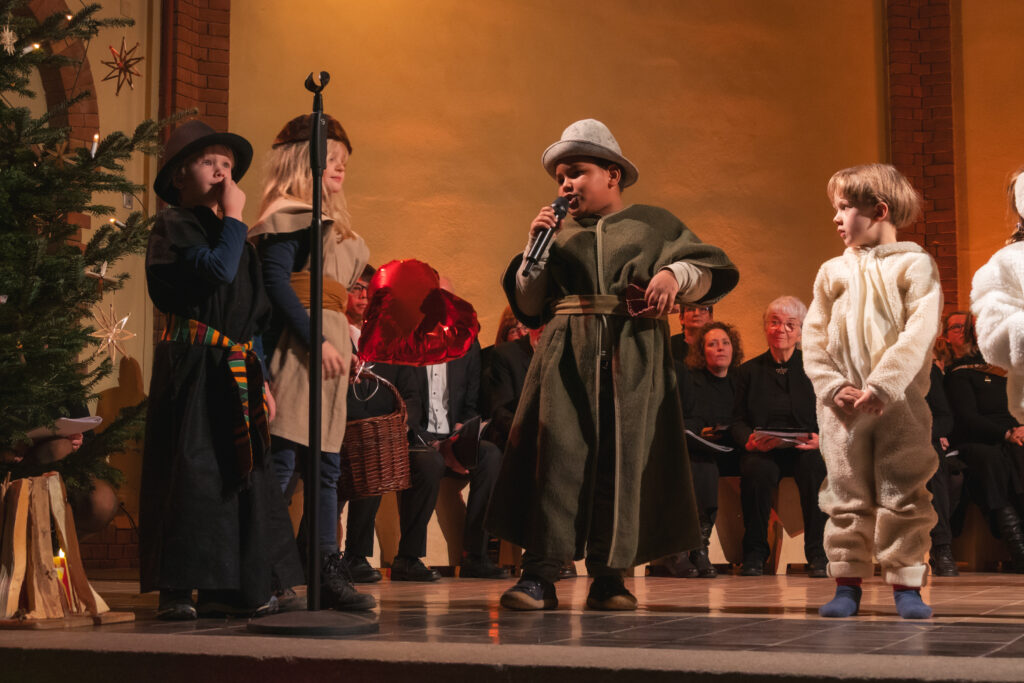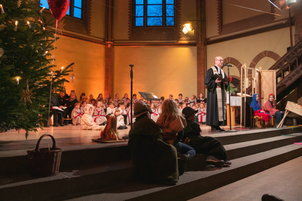 Die Thomasfische studierten unter der Leitung von Nicole Brodowski ein humorvolles Krippenspiel ein und führten uns in die Weihnacht.