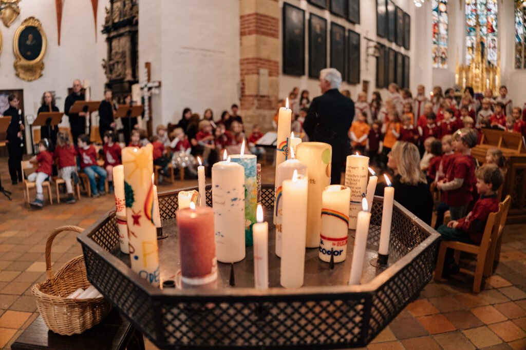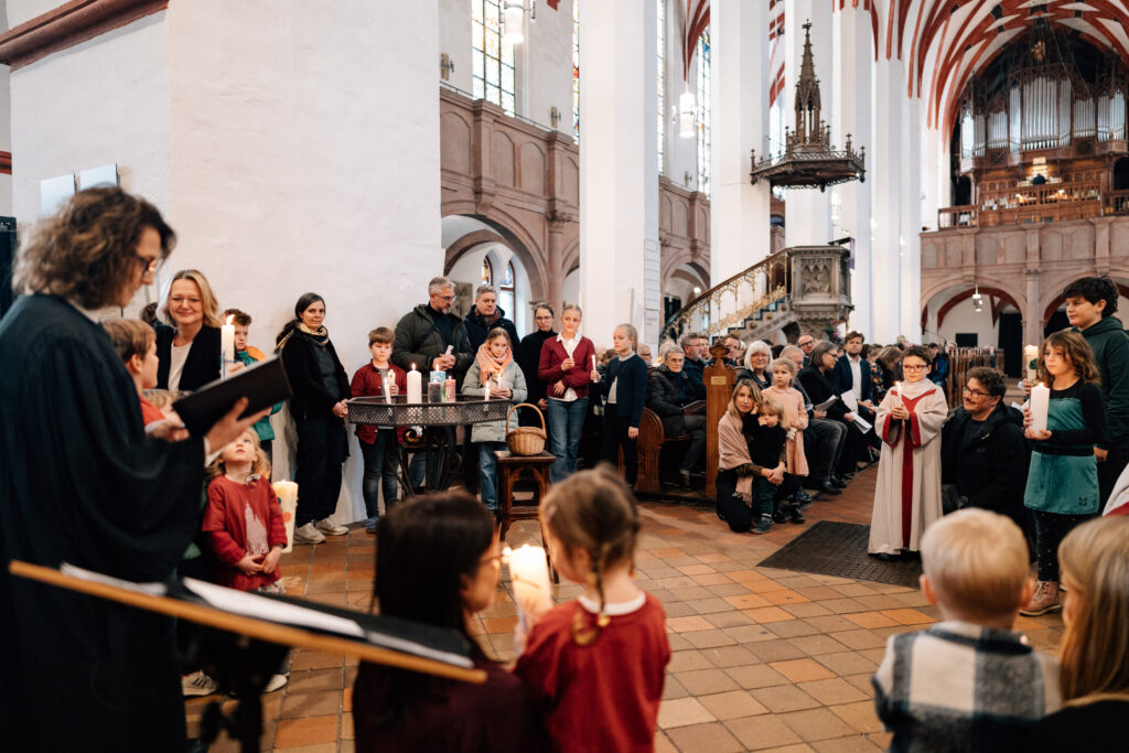 In der Ausgestaltung des Gottesdienstes wirkten zahlreiche Kinder unserer Kirchgemeinde und des Bildungscampus forum thomanum, sowie das Blockflötenensemble der Thomaskirchgemeinde mit. Pfarrerin Jutta Michael taufte drei, leitete das Taufgedächtnis und hielt die Predigt.