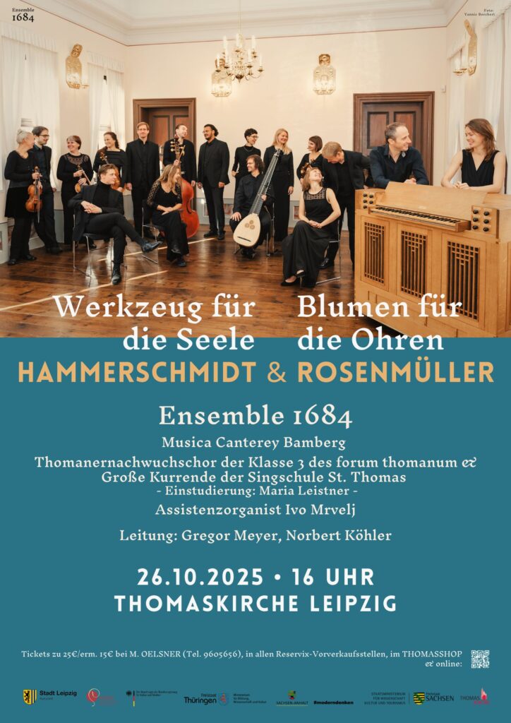 Karten erhalten Sie unter „Werkzeug für die Seele – Blumen für die Ohren“ – Werke von Hammerschmidt und Rosenmüller So. 26.10.2025 um 16:00 Uhr Tickets, Thomaskirche zu Leipzig, 04109 Leipzig – Karten online bestellen – Reservix – dein Ticketportal